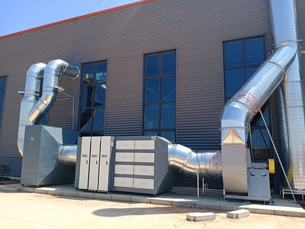 案例简介: 项目废气分成: 废气产生来源:生产过程喷涂作业时挥发 废 气 成 分:苯、甲苯、二甲苯 风量计算:整个喷漆场地尺寸4*6*4m,换气次数按100次/h计算,风量为10000m³/h。 废气处理工艺选择: 采用干式过滤+uv光催化+活性炭吸附的综合处理工艺进行废气净化处理