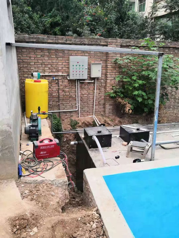 广东科润环保为屠宰场提供50吨污水处理设备的安装,屠宰污水首要源自于圈栏清洗、淋洗、屠宰以及它厂房地坪清洗、烫毛、剖解、副食生产加工、洗油等工艺所出现的污水。为此我们根据该场景选择了适合的污水处理设备,但是由于体量大,为此我们定制了50吨污水处理设备。 污水处理设备工艺设计思路: (1)一级解决:排出的污水依次流过粗细两道格栅,首要清除比较大悬浮固体和悬浮物,避免污水提升泵等机械设备堵住。随后流入隔油沉淀池,污水中包含泥砂等,这些可根据自然沉淀清除,沉淀的泥砂定期用污泥泵打入污泥浓缩罐。油脂则漂浮在水面,能够 人工捞出回收解决。由于其污水水质水量波动比较大,以保障事后解决实际效果和运作可靠性,在解决工艺流程中设置调节池,以均化水质水量。保证系统平稳运作。还可以根据调节池均化其本身的酸、碱度,以使污水的pH值满足事后处理工艺的要求。污水中包含的血污、油脂、油块等,根据混凝气浮得到有效的清除。 (2)二级解决:对于屠宰污水中难溶解、浓度较高的CODCr、BOD5,预处理流程中无法彻底清除,故二级解决采用生化解决,本设计采用水解酸化-好氧生物解决技术。水解酸化池首要目的将生物大分子物质转化成小分子物质,以便在好氧流程中进一步得到清除。 (3)三级解决:好氧解决后的出水,溢流到沉淀池中,沉淀后上清水进入消毒池,沉淀池中的污泥定期用泥浆泵打入污泥浓缩罐中。
